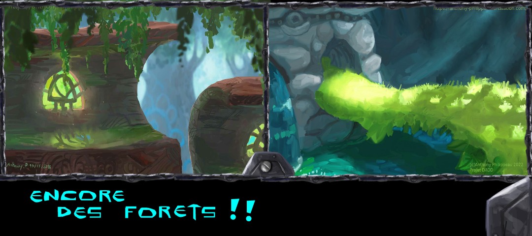 Dailleur je partage ici une nouvelle vidéo bande annonce de mon projet de jeu DADD. J'ai utilisé Blender3D pour la séquence au tout début quand la caméra traverse les arbres.