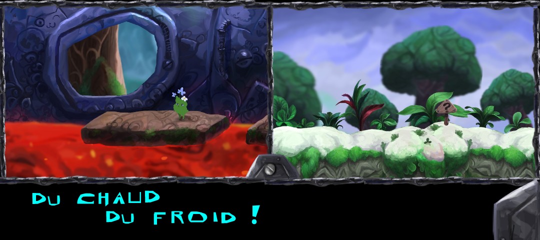 Faut comprendre que ça à été beaucoup de travaille parce qu'en plus de dessiner tout les visuels des cinématiques : Il y à les périodes de doutes dans le développement du jeu, je fais tout tout seul en plus, J'anime, je compose toutes les musiques, je programme pleins de prototypes pour voir ce qui peut être intéressant et agréable à jouer, ça à été beaucoup de travaille, pas mal de doutes aussi mais globalement plus j'accumule de belles choses et plus ça me motive à finir une Demo.