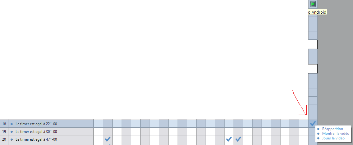 Je suis alors allé faire un tour du côté des évènements. J'ai vérifié que je demandais bien à ce module d'apparaître à 22 secondes (ce que je cherchais) et à montrer la vidéo à ce moment-là.