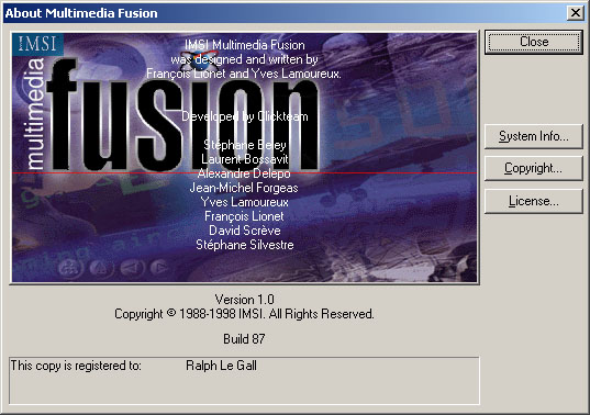 Je ne comprends pas bien pourquoi IMSI a géré ce logiciel, s'ils n'ont rien à voir avec ClickTeam qui a repris ensuite le nom Fusion.