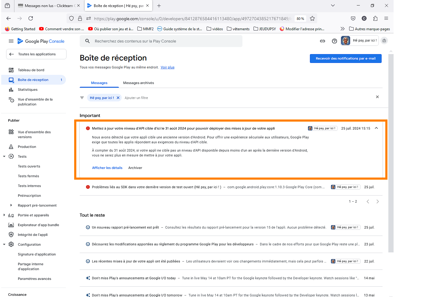 Bonjour, j'ai reçu un message qui indique qu'à partir du 23 octobre, je dois obligatoirement passer en version sdk android 14... Y a-t-il une mise à jour a faire ou bien, c'est juste une forte recommandation mais pas obligatoire comme je le crois ?