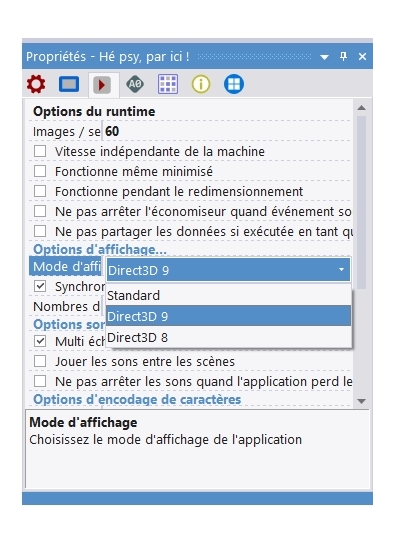 Bonjour Emmanuel, je n'ai pas le mode Direct3D 11...