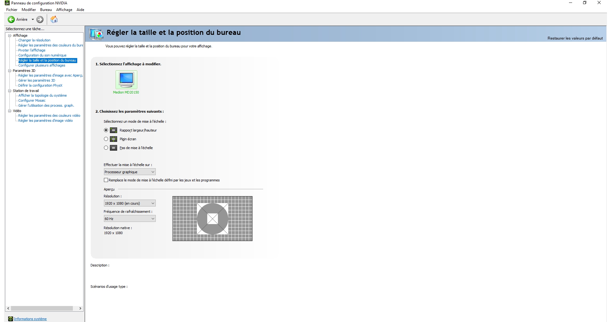 avec la meme congig, chez moi ca marche bien si je coche en plus de la config de base "maximisé au lancement' et "redimensionner pour remplir la fenetre" et rien d'autre
