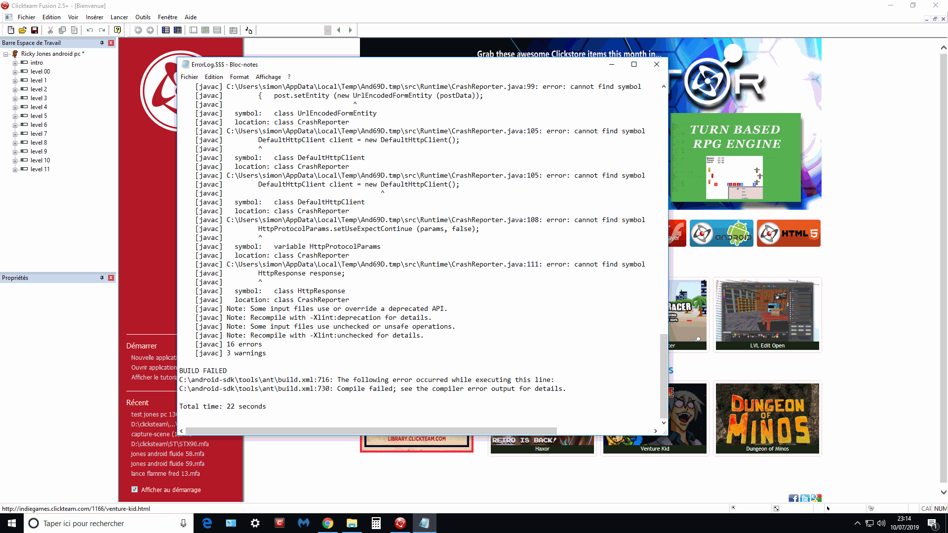 je n'ai plus l'erreur qui dit qu'il ne trouve pas build.xml, maintenant j'ai