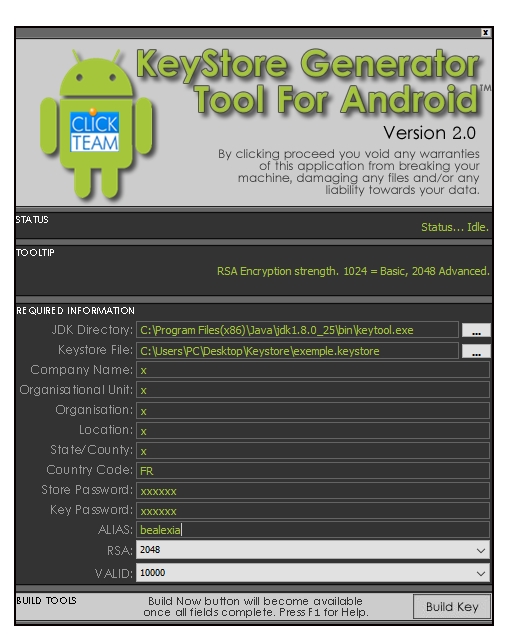 Bonsoir ! Je ne comprend pas, j'ai bien réussis à faire une clef pour mon apk mais quand je veux en créer une autre ça utilise toujours le meme fichier key.keystore ! C'est normal ? Par contre du coup j'ai deux fichier avec un compte rendu d'informations différente !