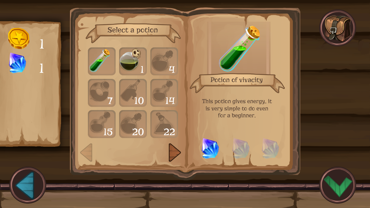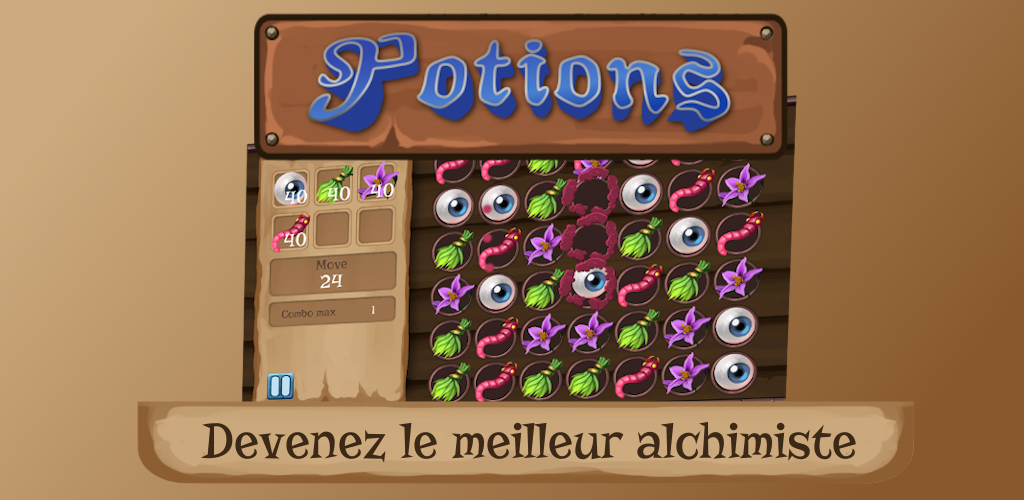 - Gagnez des pièces pour acheter des bonus qui vous aiderons à réussir les potions les plus difficiles