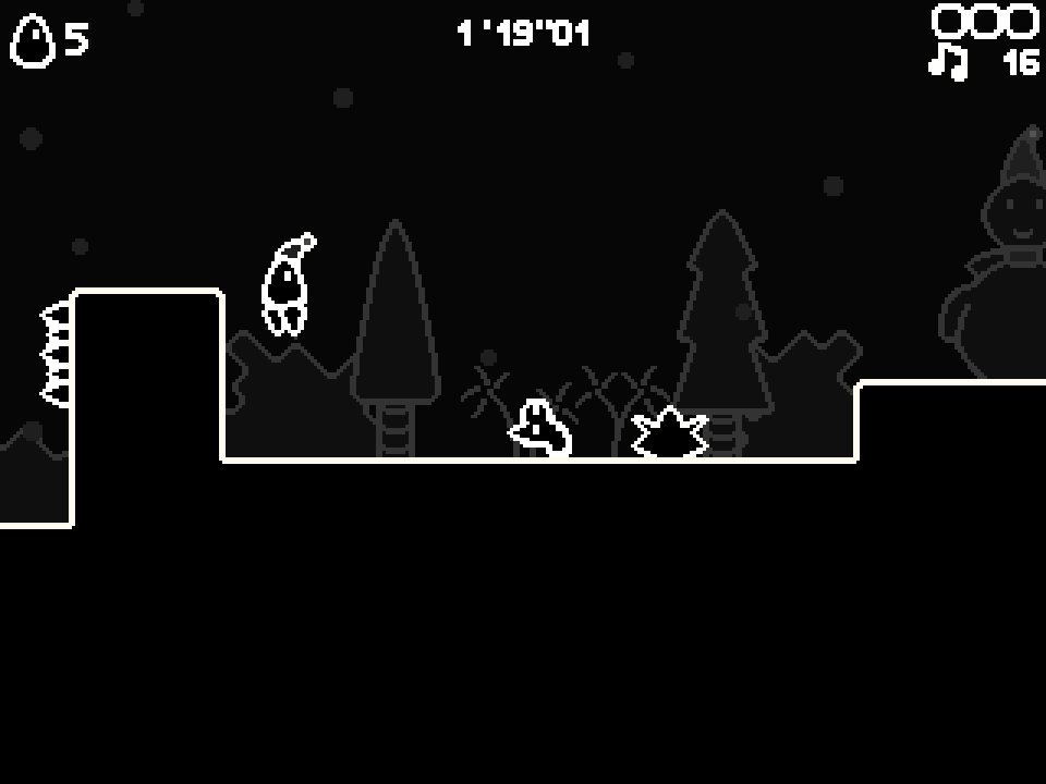 Contient 7 longs niveaux et 17 sous-niveaux pour une durée de vie de 3h, un super système de scores et un classement en ligne, des graphismes originaux en noir et blanc, de la musique chiptune composée par Arachno, et bien d'autres choses !